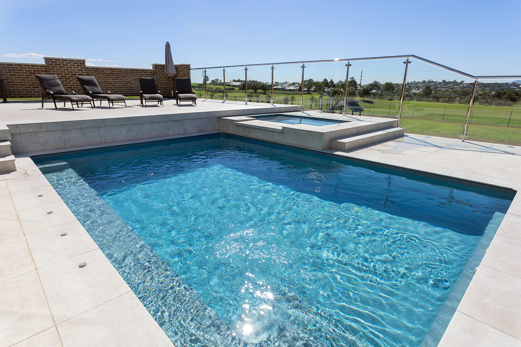 The Sanctuary pool is a modern, geometric design from Compass that fits beautifully into most backyards. With full-length bench seating and broad entry steps, it’s made for both relaxation and family fun. Featuring a variable depth—from shallow for safety to deeper for swimming—the Sanctuary pool offers versatility for kids and adults alike.